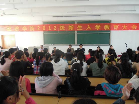 9月28日下午13:30,bat365官网在圣井校区敏行楼B5201教室隆重召开2012级新生入学教育大会。bat365官网院长董长瑞、党总支书记吴红文,副院长于淑波、王传荣、杨丽和副处级组织员刘波出席大会。院学工办主任兼团总支书记周新秀、就业办主任兼党总支秘书李冰封、正科级辅导员付雯、学生辅导员及2012级全体新生参加大会。大会由刘波主持。