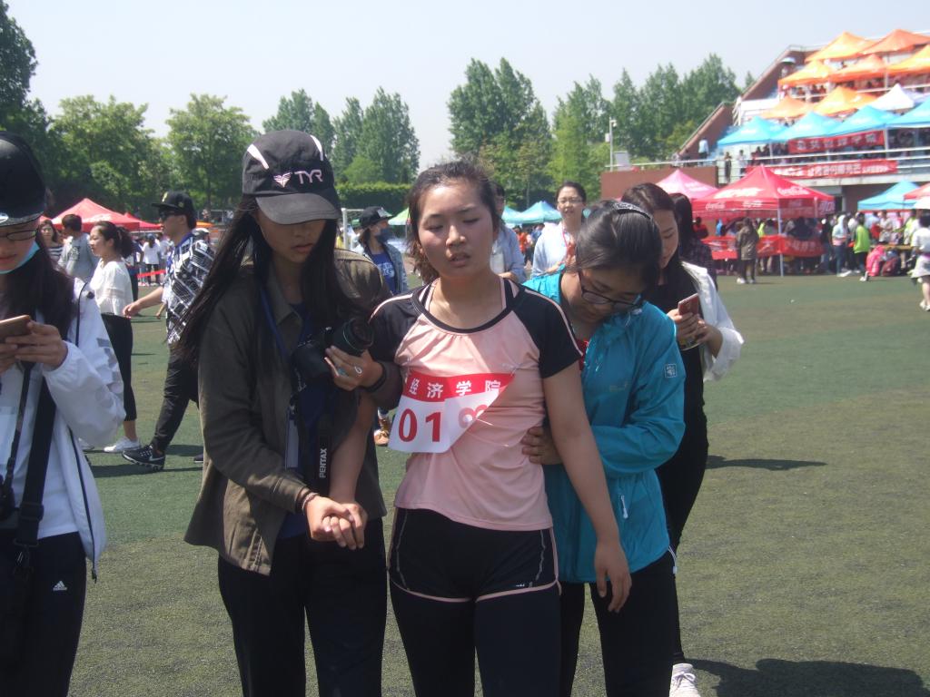 4月28日早上6:30,bat365官网学生会工作人员提前赶到比赛地点布置场地:搬运器材,摆放桌椅,搭建帐篷,悬挂横幅,布置看台,打扫场地,整理资料。比赛开始前,他们引领观众有序进场,维护场地秩序,保持看台整洁;比赛开始,他们引领运动员检录,仔细记录核对各运动员比赛成绩,认真看管各类财物;比赛进行时,他们为运动员加油打气,呐喊助威,及时补充饮用水、食品和药物,记录赛场得分,整理通讯稿件。