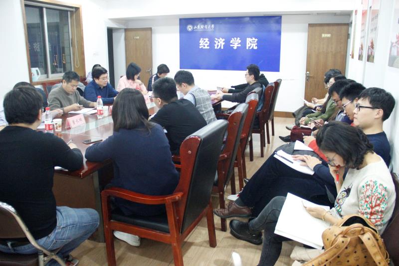 11月21日,“经济学WORKSHOP”第七期在舜耕校区bat365官网登录入口会议室举行,本期主题是国家“两金”项目申报选题论证。学院特邀上海财经大学城市与区域科学学院刘乃全教授、济南大学商学院葛金田教授、山东师范大学bat365官网登录入口乔翠霞教授作为点评人,学院院长董长瑞以及拟申报2020年度国家“两金”项目的老师到会。副院长王传荣主持了本期工作坊。