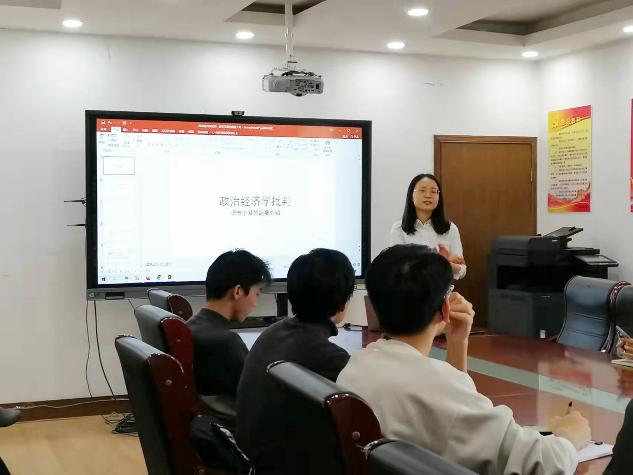 此次研讨会主题为“政治经济学批判:调节学派的简要介绍”,围绕这一主题,郭玲玲详细介绍了调节学派的研究特征、四个关注点以及重要派别,并列举了有关调节学派的参考文献。